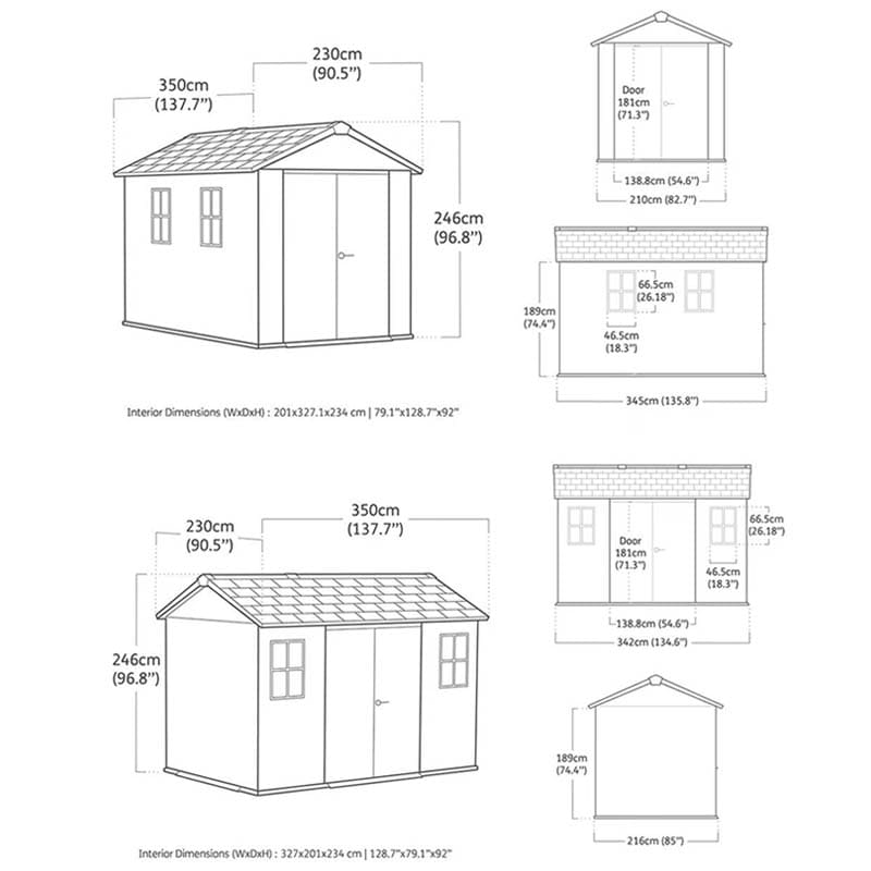 - Ampi spazi interni per conservare mobili da giardino, forniture e attrezzi da giardino.