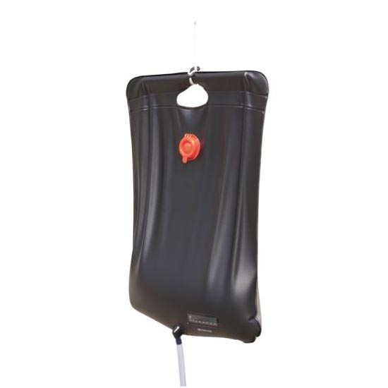 Riscaldata dal sole. Termometro facile da leggere. Manico rinforzato per appendere e trasportare la doccia. Scalda fino a 20 litri d’acqua per docce multiple. 41×58 cm.